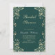 An elegant bridal shower in emerald green and gold. Decorative swirls, flowers, and scrolls in a faux gold foil surround the edges. Matching gold text in a script font.