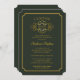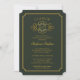 An elegant banner scroll and scalloped frame gold tone and green graduation party invitation design that can be personalised for high school, college, university or vocational school graduations. Design by Holiday Hearts Designs (all rights reserved).