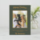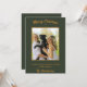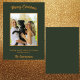 Capture the magic of the holiday season with this beautifully personalised flat Christmas card that features your favourite family photo with a gold frame on a dark forest green background. All text is a deep gold. The rich, forest greens and golden hues create a warm, nostalgic atmosphere. "Merry Christmas" is elegantly arched at the top while at the bottom is a customisable name line, adding a personal touch. These are in an elegant script font. The year date and a message: "Sending special wishes for a happy holiday season." are in a simple font in the same gold colour. The backgrounds for the card front and back are both the deep rich forest green, making it perfect for sending holiday cheer to loved ones. This elegant Christmas / holiday card is ideal for spreading heartfelt, personalised greetings this Christmas and holiday season.