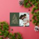 Celebrate the season in style with this Elegant Family Photo Holiday Card, blending classic charm with modern elegance. Featuring a hand-painted watercolor Christmas tree adorned with red ornaments on a deep green background, this design is enhanced with real gold foil accents and customisable family name and year. The right panel includes space for a personalised photo, making it a heartfelt keepsake for friends and loved ones. Sophisticated, festive, and personal — the perfect card to share warm wishes and beautiful memories this holiday season.