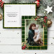 Rich, classic and elegant holiday design with add a touch of affordable luxury to your seasonal greeting! Display your single portrait-aspect family photo surrounded by a deep green and gold plaid, gold border and festive corner holly embellishments. The plaid pattern, border and text features real gold foil.