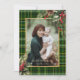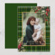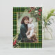 Elegant Green/Gold Plaid Holly Christmas Photo Holiday Card