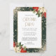 This elegant green and gold Christmas party invitation featuring gold glitter, poinsettia flower, holly with red berries and conifer branches is perfect for Christmas parties, holiday soirees, corporate events, holiday cocktail parties and more. Easily personalize this invitation with your party details.