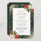 Elegant Green Gold Poinsettia Christmas Party Invitation