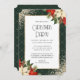 This elegant green and gold Christmas party invitation featuring gold glitter, poinsettia flower, holly with red berries and conifer branches is perfect for Christmas parties, holiday soirees, corporate events, holiday cocktail parties and more. Easily personalize this invitation with your party details.