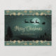 Elegant Green Gold Santa Reindeer Snowy Christmas Holiday Postcard