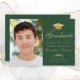 Elegant Green Gold Script Cap Photo Graduation Announcement