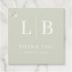 This wedding favour tag features a minimalist design with a soft, muted green background and elegant serif typography. The layout is clean and balanced, showcasing large capital letters "L" and "B" divided by a vertical line, followed by the words "THANK YOU" in smaller text below. The overall style exudes modern sophistication, making it perfect for expressing gratitude at your special event. Its simple yet refined aesthetic ensures it complements any wedding theme effortlessly.