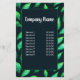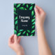 Elegant botanical personalised flyer with a mixed media ink and digital painting of abstract green leaves with light green veins over dark green, almost black, background. you can customise this banner with your company name and your discount percentage. On the back you can also change the company name, services and prices. You can also change this flyer's purpose completely. If you need help with customisation, just contact me and I'll be happy to help.