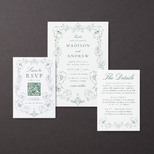 Add refined, natural elegance to your reception decor with this Elegant Green Ornate Floral Frame Wedding Table Number Card. A rich green botanical frame with graceful scrolling flourishes surrounds the table number, creating a timeless focal point that pairs beautifully with garden weddings, estate venues, and classic green wedding color palettes. “Table” appears in elegant script above a bold, easy-to-read number, while the couple’s names and wedding date are displayed below for a coordinated and personalized finish. This green wedding table number design complements traditional, vintage-inspired, and nature-inspired wedding stationery suites. This card measures 3.5"x5". Edit each table number individually and add them to your cart to ensure a smooth ordering process.