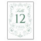 Elegant Green Ornate Floral Frame Wedding Table Number
