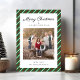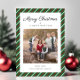 Elegant Green Stripes Photo Christmas Holiday Card.