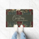 Elegant Green Plaid Red Poinsettia Name Christmas Doormat