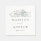 Elegant, rustic wedding paper napkins featuring a sketched illustration of a green barn and forest backdrop with a white background. Personalise the barn wedding napkins with your names and wedding date below. The personalised barn wedding napkins are perfect for your country and farm-themed wedding couples showers, rehearsal dinners, receptions, etc.