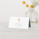 Elegant Green Script Cross First Holy Communion Place Card.