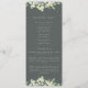 A dark grey green wedding program/order of ceremony, complete with a listing for a small wedding party and a thank you message. Featuring arrangements of hand painted snowberries and eucalyptus. All text is fully editable. Please view this Collection in my store for programs with alternative wording/layouts and in different sizes/colours/shapes. Coordinating items also available.