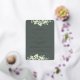 A dark grey green bridal/wedding shower invitation, featuring an edging of hand painted snowberries and stems of eucalyptus. The text and scattered dots on the front of the card are foil pressed. Please view this Collection in my store for alternative floral arrangements, different colours and for coordinating items.