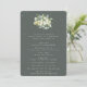 A dark grey green wedding program/order of ceremony, with a listing for a small wedding party and a thank you message on the back. Featuring an elegant bouquet/posy of hand painted snowberries and eucalyptus and a scattering of dots. All text is fully editable. Please view this Collection in my store for programs with alternative wording/layouts and in different sizes/colours/shapes. Coordinating items also available.