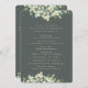 A dark grey green wedding program/order of ceremony, complete with a listing for a large wedding party on the back. Featuring an edging of hand painted snowberries and eucalyptus and a scattering of dots. All text is fully editable. Please view this Collection in my store for programs with alternative wording/layouts and in different sizes/colours/shapes. Coordinating items also available.
