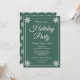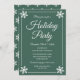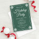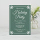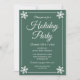 Festive holiday party invitation design features elegant "Holiday Party" script text and celebration details that can be fully personalised, framed by a stylish snowflake framed border. This two sided design features a snowflake pattern on the reverse side. The pine green background colour can be modified via Customise.