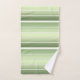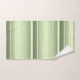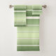 A beautiful striped bathroom towel set in different shades of green with ivory.