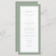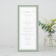 This elegant & minimalist wedding menu features a classy sage green double border with sage green text & script.