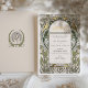 Invite your loved ones to celebrate your special day with our Elegant Islamic Wedding Invitation. This exquisite design features a delicate art nouveau-inspired frame in an earthy palette, including shades of sage green, cream, beige, and hints of gold foil accents for a touch of opulence. The front of the invitation showcases a beautiful Arabic calligraphy of "Bismillah" (In the name of God) in a stylised script, complemented by an ornate botanical motif. The back presents a sophisticated monogram of the couple's initials encircled by a botanical wreath, mirroring the front design's elegance. This invitation is perfect for couples looking to blend traditional Islamic elements with classic art nouveau finesse.
