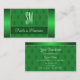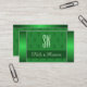 Make a lasting impression with this elegant business card design featuring shimmery green gradient borders and monogram pattern on a green background.