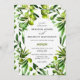 Olive leaves white frame greenery wedding invitation. Invite your family and friends to your wedding with our customisable country wedding invitation. Our country wedding invitation features olive leaves and plants watercolor style with their details on a white frame. It's perfect for summer weddings and country weddings.