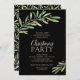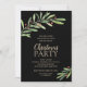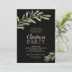 Greenery and berries on black accent your party information in chic lettering on these Christmas holiday party invitations. MATCHING items in our store.