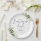 This elegant greenery floral engagement party paper plate can be personalised with your information in chic typography. Designed by Thisisnotme©