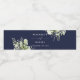 Elegant Greenery Floral Navy Blue Wedding Water Bottle Label