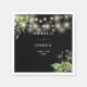 This elegant greenery botanical floral string lights wedding napkin can be personalised with your information in chic typography on a black background. Designed by Thisisnotme©