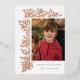 Elegant Greenery Foliage Photo Foil Holiday Card features modern hand drawn botanical garland with offset photo on the front. The back has a second photo with personal message and year. Click the personalise/edit button to customise this design with your photos and details.