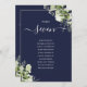 These elegant navy blue botanical greenery leaves wedding table numbers can be personalised with your guests' seating plan set in chic typography. The cards are printed on the front and back (double-sided). Designed by Thisisnotme©