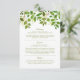 Wild garden wedding information card featuring organic lush green foliage painted in watercolor, and a modern wedding detail template.