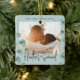Create your own wedding keepsake with this mint green Elegant Greenery Merry and Married Photo Holiday Ceramic Ornament. This modern and chic design features eucalyptus branches watercolor illustrations and a stylish faux gold foil geometric photo frame. Add two custom photo on front and back, newlywed names and a personalised text. Show all your love with this one ok a kind custom ceramic ornament. perfect also as anniversary and engagement gift. Your girlfriend will love it! No minimum order.