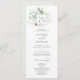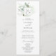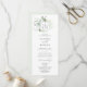 This elegant greenery monogram wedding program is perfect for a simple wedding. The modern elegant design features a natural botanical arrangement of eucalyptus, leaves and plants with a subtle mint green watercolor wash accent. Include the name of the bride and groom, the wedding date and location, thank you message, order of service, bridal party and an optional "in loving memory" memorial.