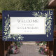 Elegant Greenery Navy Blue Wedding Welcome Banner