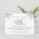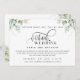Invite friends and family to join your intimate "virtual/online" wedding with this elegant and romantic invitation. Gorgeous "Virtual Wedding" phrase in modern block and hand written calligraphy. Exquisite hand painted floral greenery encasing your details with foliage in green, olive, dusty blue and teal tones. Phrase on top "Nothing fancy, but full of love can be changed to any other phrase you like or even erase. Add your message, date, time and your virtual address so everyone can join the celebration! Back with stylish logo with bride and grooms full names and greenery corner details. Modern, romantic elegant feel.
