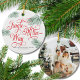 Elegant Greenery Red Calligraphy Christmas Ceramic Ornament - Give a memorable gift with this beautiful, modern and festive Christmas photo ornament. Jingle All The Way is framed by lush, hand drawn Christmas greenery. Add your own photo on the back.
