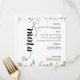 Bring sophisticated charm to your reception with this elegant greenery wedding menu. Designed in a round shape with fancy script and lush watercolor foliage, it fits beautifully on each plate. A perfect match for garden, boho, or outdoor weddings.