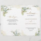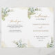Welcome your guest with this exquisite wedding ceremony program, featuring gorgeous watercolor Eucalyptus greenery details and delicate watercolor stains in a beautiful blend of green, blue, cream, beige and yellow tan hues. Use of hand written typography details in gold. Personalise the wording in all sides. NOTE: this programs arrive flat and require folding down the middle to assemble. The default value paper is recommended. For a clean fold we suggest the use of inexpensive bone folder. Part of our "Elegant Greenery Eucalyptus Wedding and Events" collection with a variety of coordinating products available.