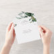All in One Wedding invitation featuring elegant greenery. Each card includes a perforated RSVP card that’s addressed and ready for your guests to send back in the mail. Customise with your information or click "click to customise further" to change the font style, size, colour or background colour.