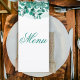 Elevate your reception tablescape with this elegant greenery wedding menu card, featuring soft watercolor eucalyptus accents and a clean, refined layout. The delicate botanical greenery at the top pairs beautifully with modern typography, creating a menu design that feels both fresh and timeless.
