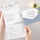 Elegant watercolor greenery and floral All-in-One Wedding invitation with perforated RSVP. Environmentally friendly as there is no need for extra insert cards, RSVP cards or even envelopes, this invitation has it all! Ability to add both Wedding Ceremony and Reception details, as well as RSVP postcard ready for guests to fill in and mail! Design with exquisite greenery and floral details in a beautiful blend of white, blue and green tones. RSVP back in dusty blue tone. Also available with RSVP back in navy. Option to order invitations with printed (or hand write later) guest name on the back so you can mail it with no need of envelopes, or instead, add a personal message or quote if you prefer to send card with an envelope. Attractive design ideal for the elegant, yet practical and eco-friendly couple! Part of our "Elegant Bliss" collection with a variety of coordinating invitations, insert cards, mailing accessories, save the dates, thank you cards and event signs and products.