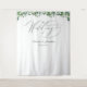 This elegant floral greenery wedding tapestry makes the perfect backdrop for your wedding photos. The modern design features hand painted watercolor greenery with white magnolia flowers. Personalise with the bride's and groom's names and wedding date in black script. Designed by Susan Coffey.