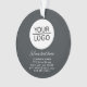 Elegant Anthracite Grey Add your Logo with Custom Text Company Promotion Ornament. Insert your logo into the template and customise the text, company name, address and contact information on the front and on the backside. Business promotion or giveaway for your clients and business partners.