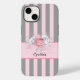 Elegant Grey and Pink Stripes and Flowers Case-Mate iPhone Case