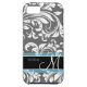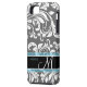 Elegant Grey and white floral damask w/ monogram Case-Mate iPhone Case